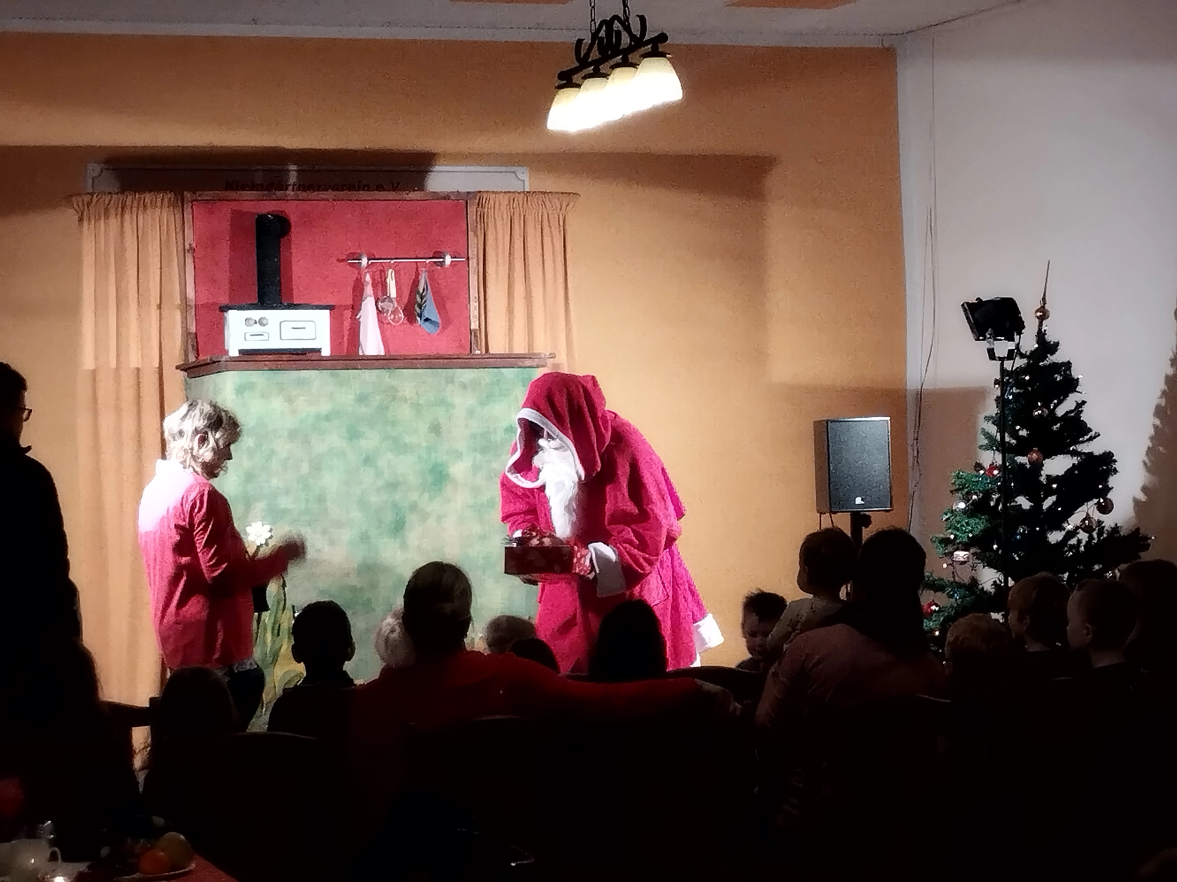 Für die Unterhaltung der kleinen Gäste führte das Puppentheater Sterntaler das Märchen „Das Kätzchen und die Maus“ auf. Bei Stollen und Kaffee bzw. Kakao verbrachten alle Anwesenden gemeinsam einen besinnlichen Nachmittag in der Vorweihnachtszeit. Als besonderes Highlight für die Kleinen gab es einen Überraschungsbesuch vom Weihnachtsmann, der Geschenke im Gepäck hatte.