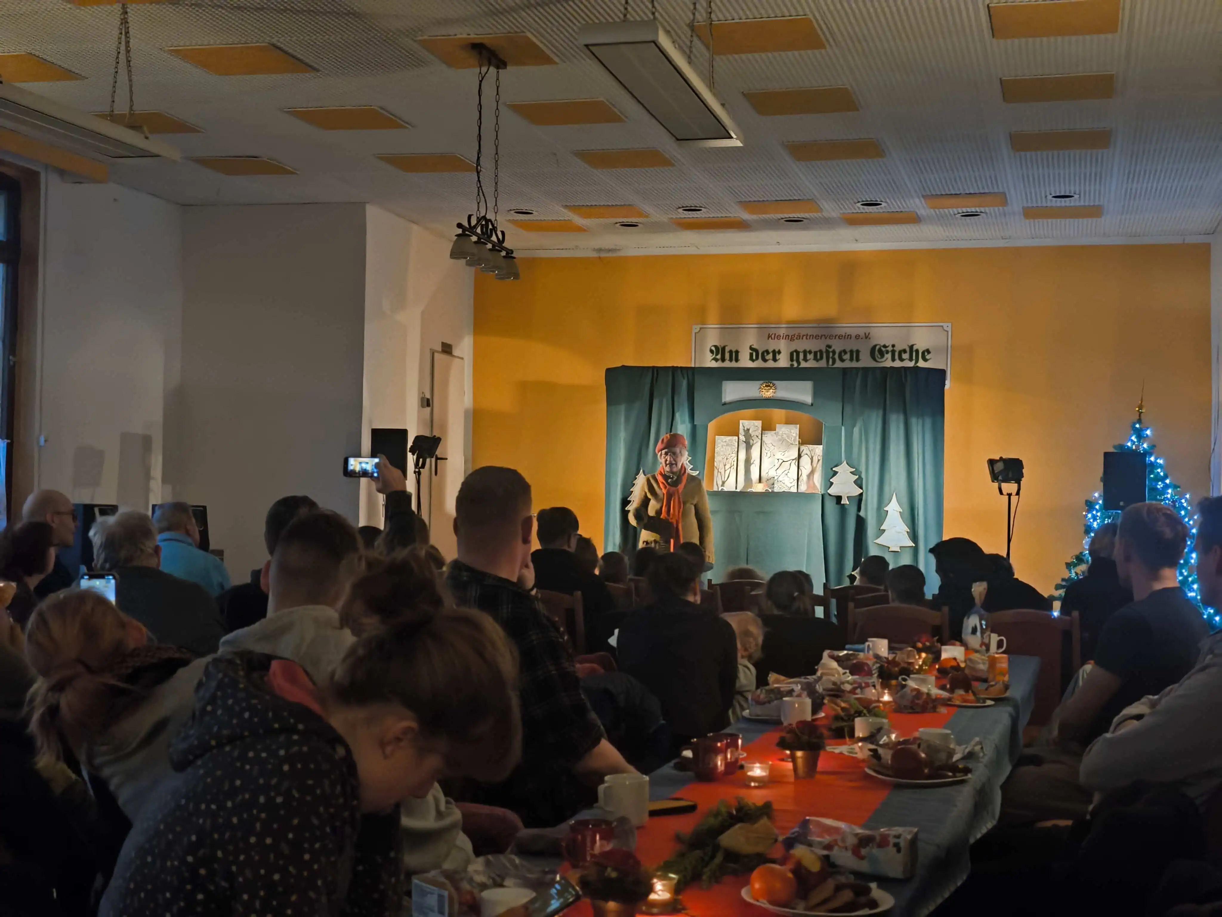 Am 21.12.2024 luden die drei Vereine „An der Großen Eiche“, „Am Silbersee“ und „Leinestraße“ e.V. ihre jüngsten Mitglieder wieder zur alljährlichen Weihnachtsfeier ein. Kinder und Enkelkinder von Vereinsmitgliedern, aber auch Gäste waren wie stets herzlich willkommen, sich kurz vorm Feste in weihnachtliche Stimmung zu bringen. Für Unterhaltung sorgte auch in diesem Jahr das Puppentheater Sterntaler mit der winterlichen Geschichte „Spuren im Schnee“. Für das leibliche Wohl der großen und kleinen Besucher war mit Stollen, Kaffee, Kakao und Glühwein bestens gesorgt. Der am meisten herbeigesehnte Programmpunkt für die Nachwuchsgärtner war natürlich der Besuch des Weihnachtsmannes, der für jedes Kind Geschenke im Gepäck hatte.